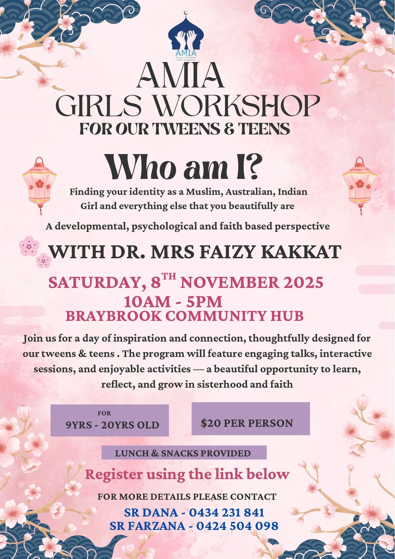 On Behalf of AMIA Victoria we are pleased to announce "AMIA GIRLS WORKSHOP FOR OUR TWEENS & TEENS" on Saturday, 8th November 2025.