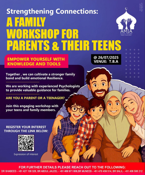 AMIA Victoria warmly invites you to a special Family Workshop for parents and their teens on 26 July 2025, as part of our exciting new initiative — AMIA Youth Catalyst. This engaging and interactive event is designed to help families build stronger connections, enhance emotional resilience, and grow together with expert guidance.